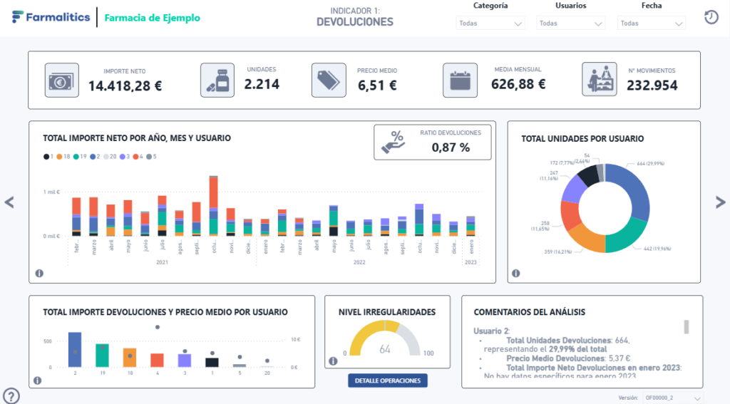 Durante el análisis de ventas y stock, detectamos anomalías en devoluciones y recetas que no coincidían. Gracias a esta detección, se pudo detener a tiempo una actividad fraudulenta que habría generado pérdidas superiores a 10.000 euros en un año.